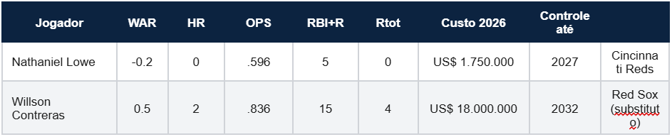 ▶ Conclusão: claramente estrondamos na terceira base. Resta saber se Durbin vai encontrar o bastão ou se esta posição vai continuar sendo um buraco ofensivo.