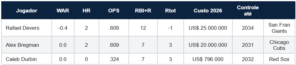 Devers foi o mais doloroso pela forma: a diretoria criou o problema, assinou Bregman para resolver, e acabou perdendo os dois. Durbin é a solução para a terceira base de 2026.